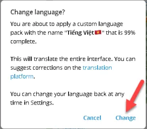 Sau bước này, toàn bộ giao diện Telegram của bạn sẽ được chuyển sang TIẾNG VIỆT